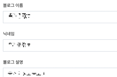 아래는 티스토리 블로그 세팅에서 '블로그' 메뉴, 제일 하단에 있는 블로그 이름, 닉네임, 블로그 설명을 적는 곳이다. 여기의 주의점은 다들 간과하는 경우가 많은데, 여기에 이런 행위를 하면 저품질이나 통누락이 될 수 있다.